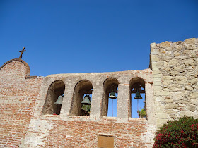 I recently learned about another cool connection to today while in California. When shopping at Michael's the other week, Adam said that a clue about one of his surprises was on a display in the craft store. He led me over to the display and asked which one I liked. The display consisted of art projects and models that you could build of local missions. I had no idea what I was looking at that day. I did not know that in CA there are 21 missions that had been established. I later learned that 4th grade students spend a lot of time learning about these special places within Californian history. So there we were standing in the aisle at Michael's with Adam asking which one I might like to go to someday. I chose this one because of the distinctive domes.