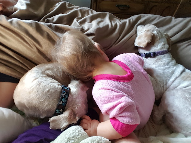 Day 12: My puppies make me smile every day. Dusty is about to turn 11 next month and it pains me to see his back legs failing him the way they have been lately but he's still the same four month old pup in my mind. Hershey knows no limits to his boundless energy! They are always excited to greet us when we come home and lovingly tolerate Charlotte's antics as she is more mobile and loves to throw herself down on them.